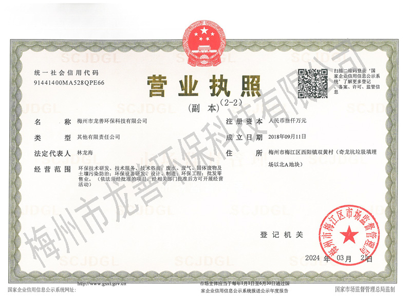 梅州市龍善環(huán)保科技有限公司為龍善環(huán)保股份有限公司(簡稱“龍善環(huán)?!保┳庸尽}埳骗h(huán)保于1995年12月成立,注冊資本為人民幣6,000萬元,總部位于深圳市南山區(qū)月亮灣大道2078號兆龍大樓16層。公司經(jīng)生態(tài)環(huán)境部、廣東省生態(tài)環(huán)境廳、深圳市生態(tài)環(huán)境局、深圳市交通運(yùn)輸委員會、深圳海事局等部門許可專業(yè)從事陸地和海洋環(huán)境保護(hù)產(chǎn)業(yè)的高科技民營企業(yè),主要經(jīng)營業(yè)務(wù)包括工業(yè)廢物收運(yùn)、資源化利用和無害化處理處置、海洋船舶污油水接收和集中處理處置、突發(fā)環(huán)境事故清污應(yīng)急處置等......